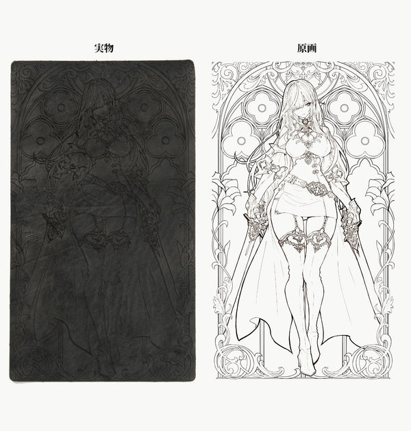 ・虫麻呂氏描き下ろしの美麗の女神「Six or Nine」を、使用する毎に風合い深まる上質な牛革に職人の協力のもと、高いクオリティで再現!