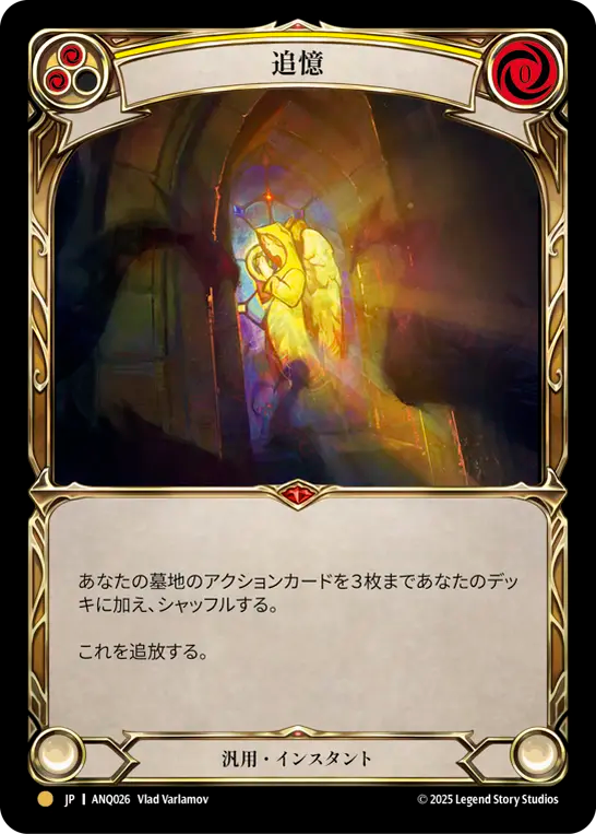 - あなたの墓地のアクションカードを3枚まであなたのデッキに加え、シャッフルする。{br}これを追放する。