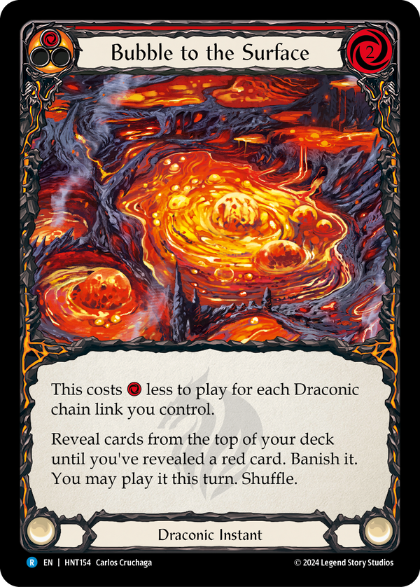 - This costs {r} less to play for each Draconic chain link you control. Reveal cards from the top of your deck until you've revealed a red card. Banish it. You may play it this turn. Shuffle.