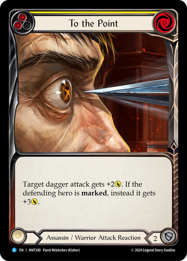 - Target dagger attack gets +2{p}. If the defending hero is marked, instead it gets +3{p}.