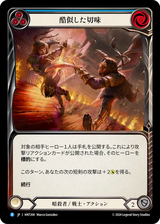 - Target opposing hero reveals their hand. If an attack reaction card is revealed this way, mark them. Your next dagger attack this turn gets +2{p}. Go again