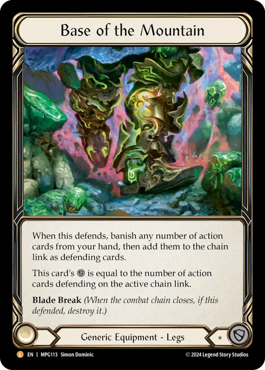 - When this defends, banish any number of action cards from your hand, then add them to the chain link as defending cards. This card's {d} is equal to the number of action cards defending on the active chain link. Blade Break