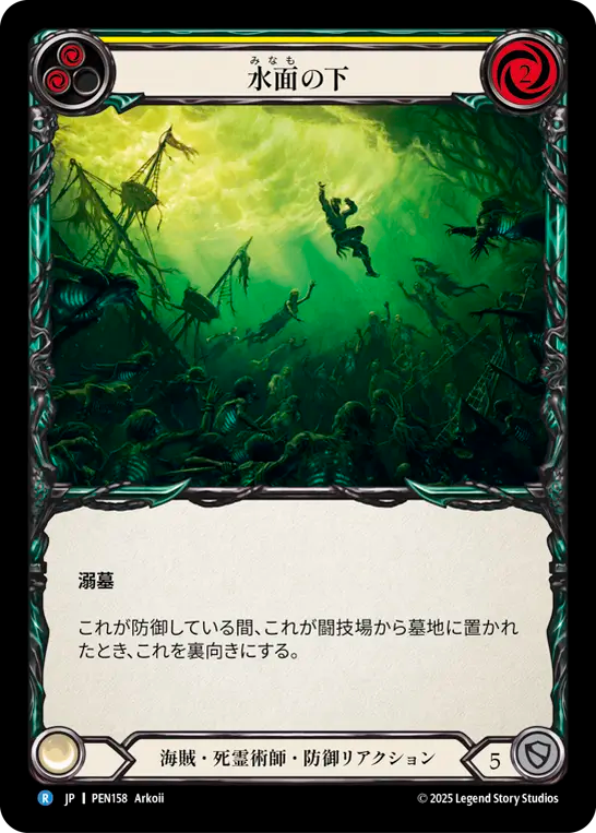 - **溺墓**{br}これが防御している間、これが闘技場から墓地に置かれたとき、これを裏向きにする。
