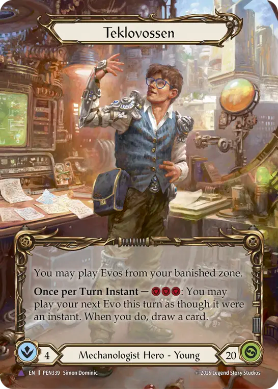 - You may play Evos from your banished zone.{br}**Once per Turn Instant** -- {r}{r}{r}: You may play your next Evo this turn as though it were an instant. When you do, draw a card.