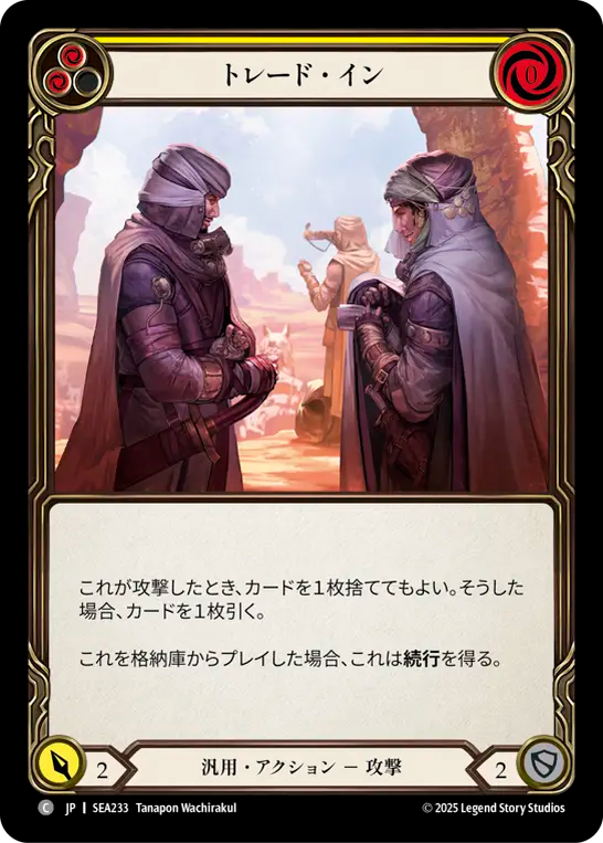 - When you attack with Trade In, you may discard a card. If you do, draw a card. If Trade In is played from arsenal, it gains go again.