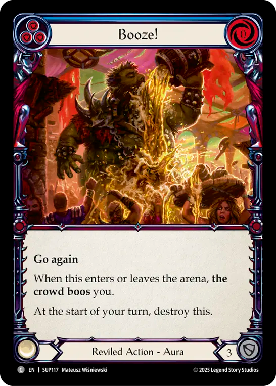 - Go again When this enters or leaves the arena, the crowd boos you. At the start of your turn, destroy this.